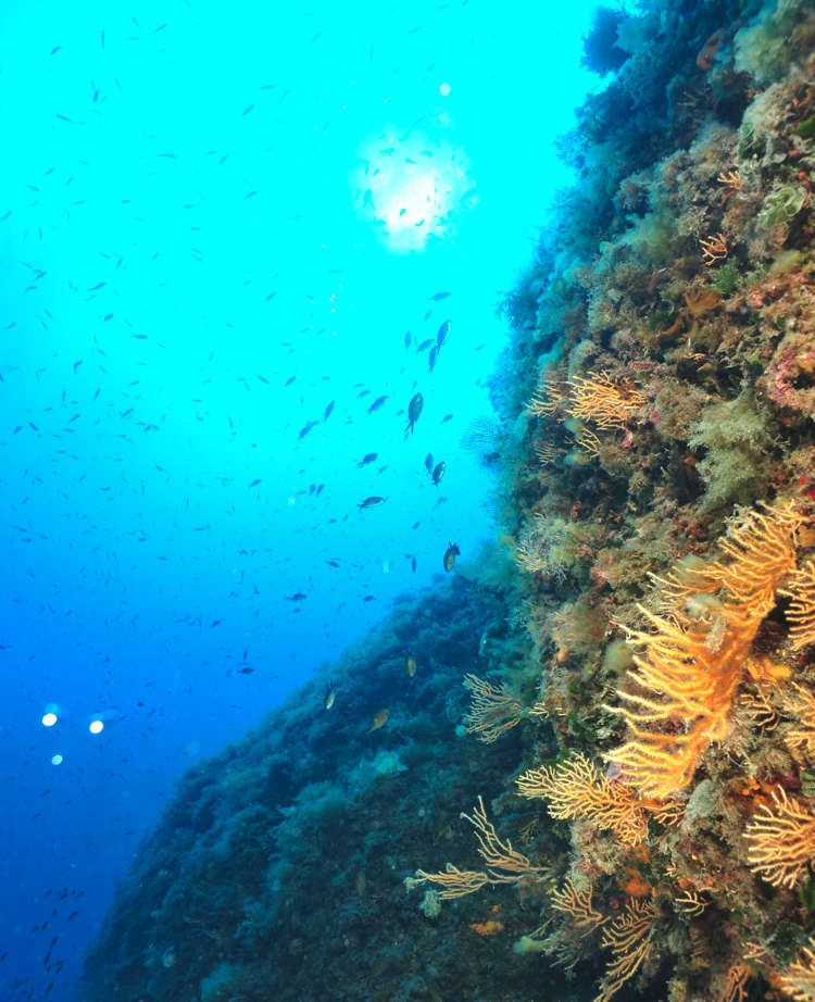 "Il nome di questo sito di immersione è dato da una parete a strapiombo alta più di 70 metri senza sporgenze"