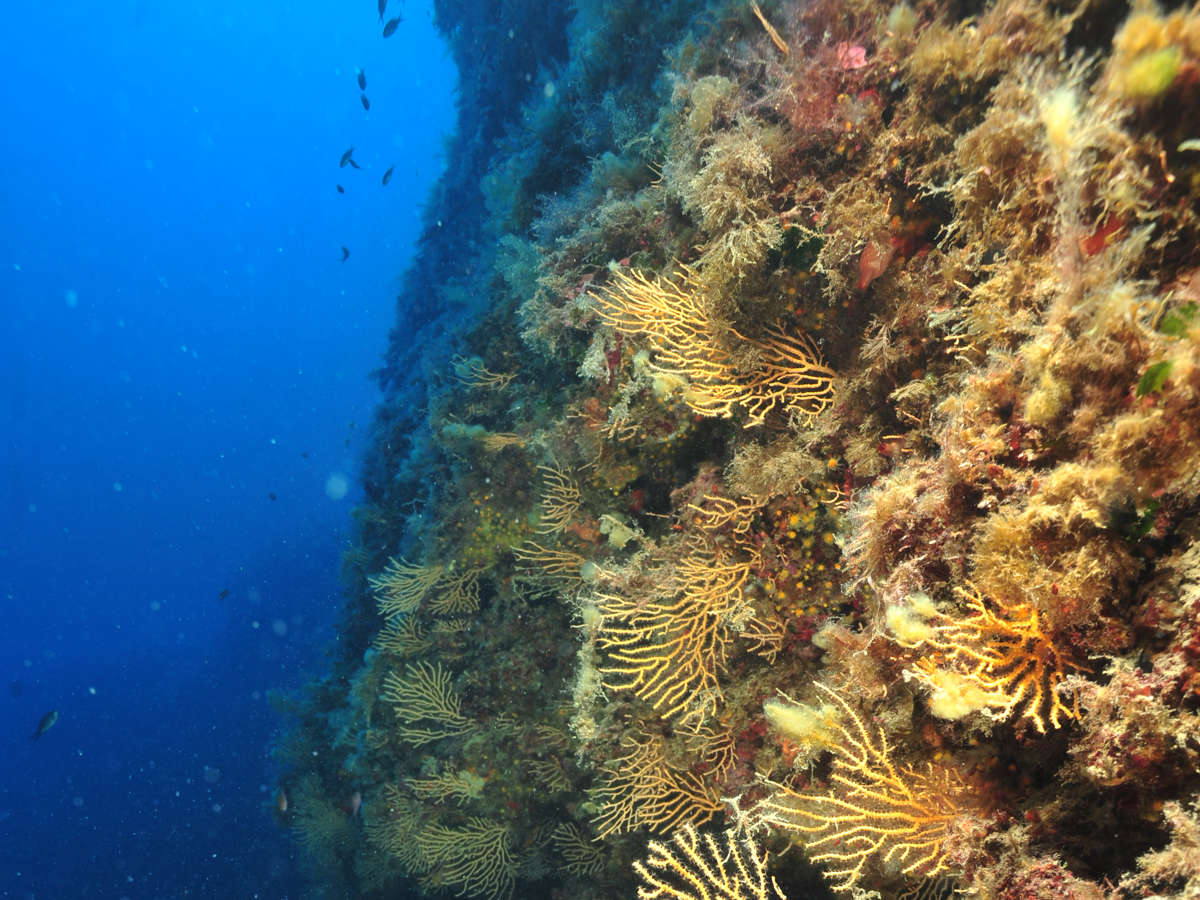 "Il nome di questo sito di immersione è dato da una parete a strapiombo alta più di 70 metri senza sporgenze"